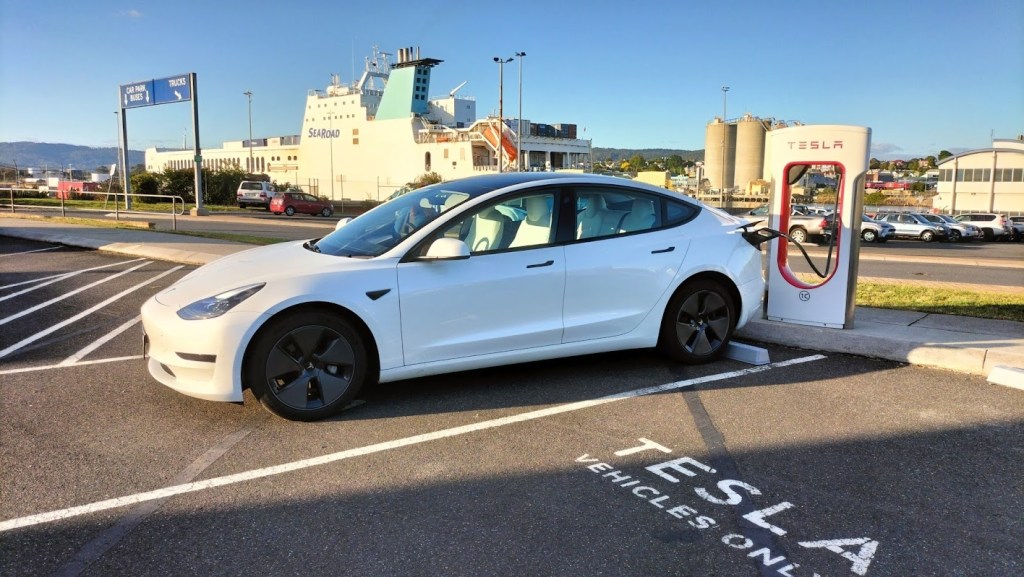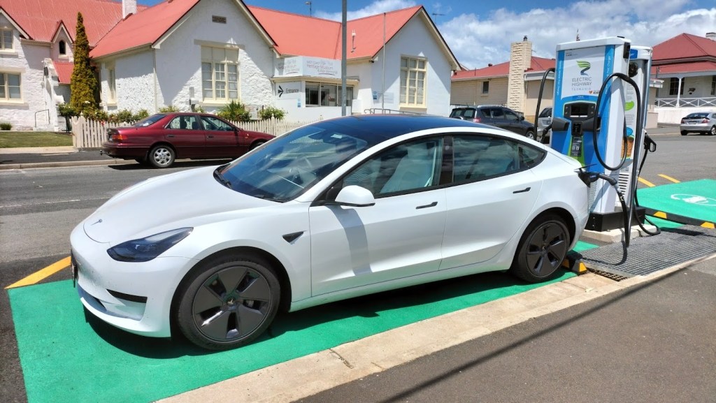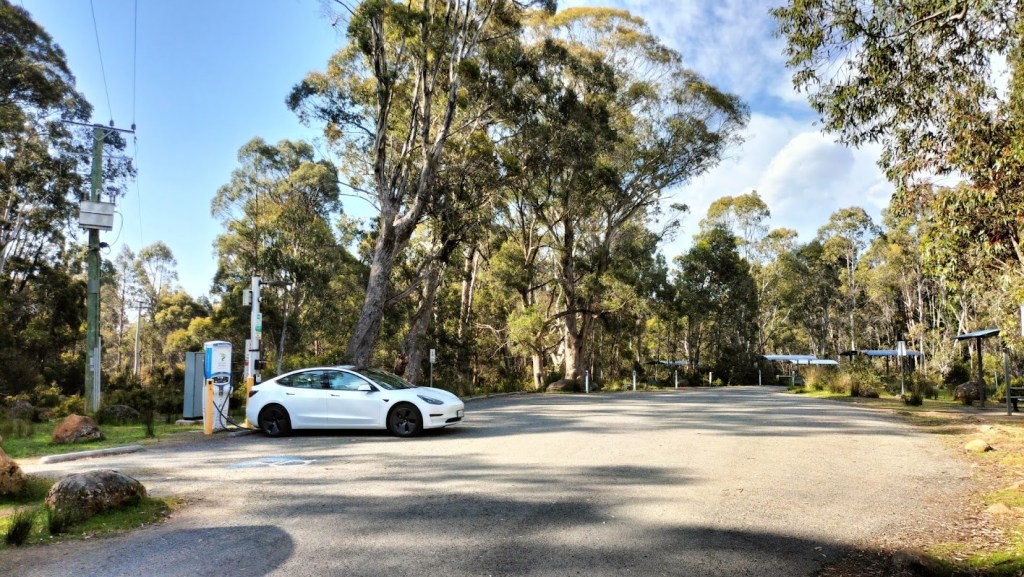 Planując tę wycieczkę przyjąłem dwa założenia. Po pierwsze będziemy się trzymać tylko asfaltowych dróg. Da się co prawda zrobić jeszcze większą pętlę dookoła wyspy, jadąc wzdłuż zachodniego wybrzeża. Pomimo braku stacji ładowania na zachodzie, jest to wykonalne nawet przeciętnym samochodem elektrycznym, jednak ta trasa to w większości drogi żwirowe, więc w trosce o opony, lakier i zawieszenie natychmiast odrzuciłem tę wersję. Drugim założeniem była minimalizacja czasu jazdy po zmroku. To wówczas na ulicę wychodzą tysiące kanguropodobnych mieszkańców buszu, a ostatnie czego chciałbym doświadczyć, to bliskie spotkanie zderzaka z lokalną fauną.