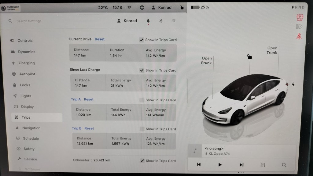 Trasę wyznaczyłem posiłkując się aplikacją A Better Route Planner. Kilka razy musiałem zmodyfikować zaproponowaną drogę, ale ostatecznie znalazłem właściwą trasę. 1021 kilometrów, nieco ponad 12 godzin ciągłej jazdy, 5 przystanków na ładowanie i jeszcze kilka minut w zapasie. Zgodnie z zasadą niejeżdzenia po zmroku, datę wyjazdu ustaliłem na dwudziesty grudnia – prawie najdłuższy dzień w roku.